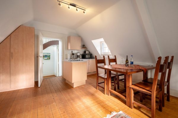 “Wasser brauchte es nicht zu Schutz, dafür gab’s ja hier oben auch gar nicht genug,“ sagt Christian Borgmann. Er empfängt in der Vorburg, und da liegen das historische Kutscherhaus und das Wächterhaus, Rückzugsorte auf Zeit, bewohnbare Denkmale als Feriendomizile mit kleinen Balkons, Terrassen, einem Gärtchen… Die Buchungen der Gäste – über diverse Portale – helfen, diese gut gepflegten Bauten zu erhalten.